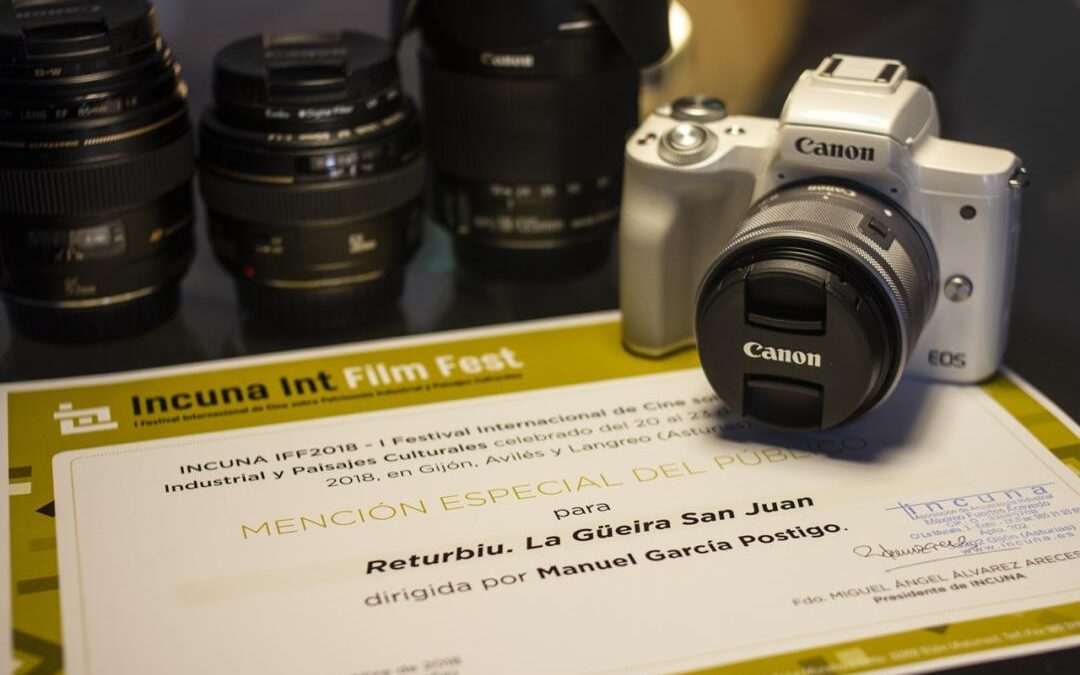Manuel García Postigo, ganador con su película «Returbio. La Güeira San Juan» del premio Canon «Mención especial del público» patrocinado en el Incuna Film Festival, recibe una cámara Canon EOS M50, que cuenta con la última tecnología de fotografía y vídeo 4k, pantalla táctil de ángulo variable, sensor CMOS de 24,1 megapíxeles y DIGIC 8.